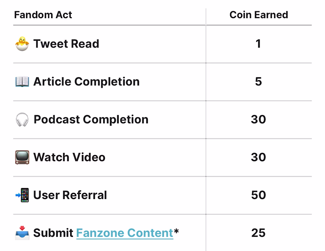 Some “acts of fandom” now earn different coin amounts